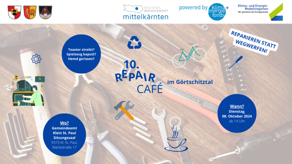 Es freut die KEM sehr, dass das Repair Café so gut angenommen wird. Daher findet das nächste Repair Café am 08.10.2024 bereits zum 10. Mal statt. Der Veranstaltungsort ist wieder der Sitzungssaal im Gemeindeamt Klein St. Paul.