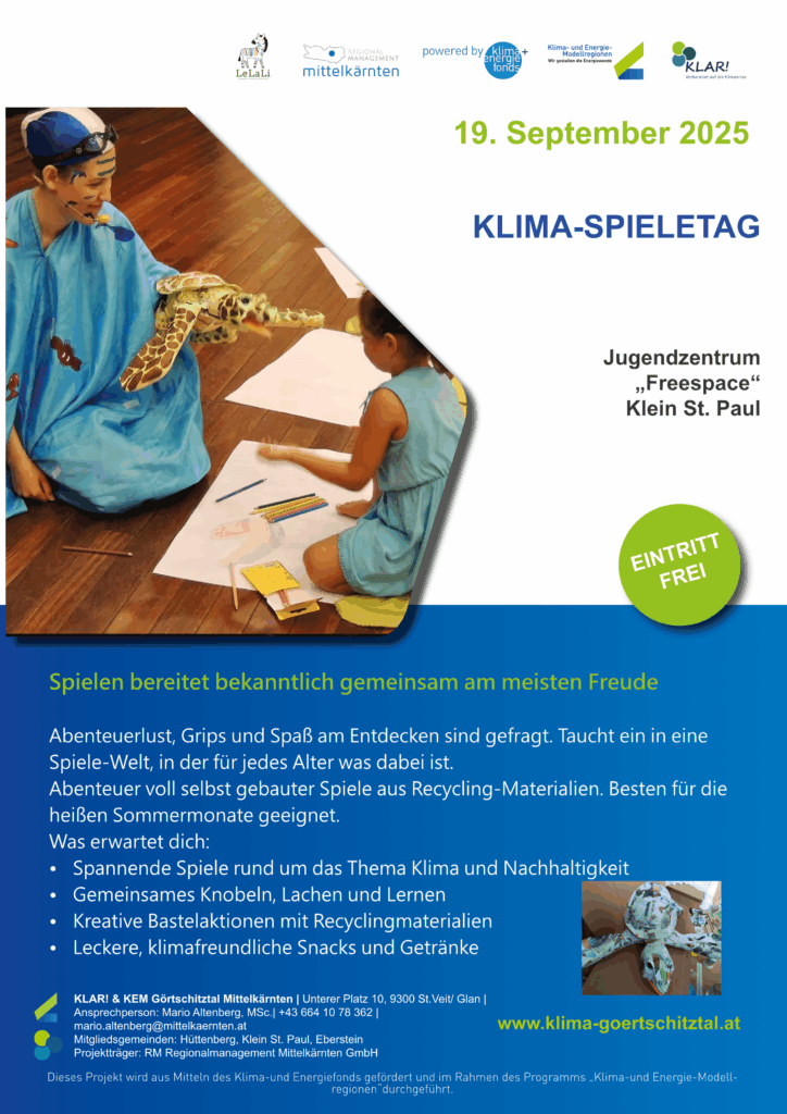„Wir wollten zeigen, dass Klimaschutz nicht nur wichtig, sondern auch spannend und gemeinschaftsstiftend sein kann“, sagte Mario Altenberg von der KLAR! Görtschitztal. „Gerade Kinder und Jugendliche lassen sich durch spielerisches Lernen besonders gut erreichen – und oft nehmen sie das neue Wissen mit nach Hause.“